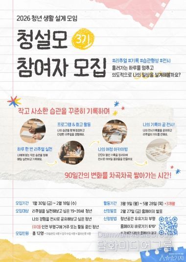 유유기지 부평 관계자는 “청설모는 청년들이 자신의 생활을 주도적으로 설계하고, 기록을 통해 변화를 체감할 수 있도록 돕는 프로그램”이라며 “함께 실천하고 서로를 응원하는 과정을 통해 청년들의 일상에 긍정적인 변화가 쌓이길 기대한다”고 말했다.
