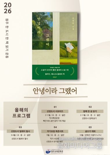 시민행정신문 기자 | 강원특별자치도교육청원주교육문화관(관장 용석태)은 시민 독서 문화 확산과 책 읽는 공동체 조성을 위해 2026년 ‘원주 한 도시 한 책 읽기 운동’ 사업의 일환으로 연중 다양한 독서 참여 프로그램을 운영한다.