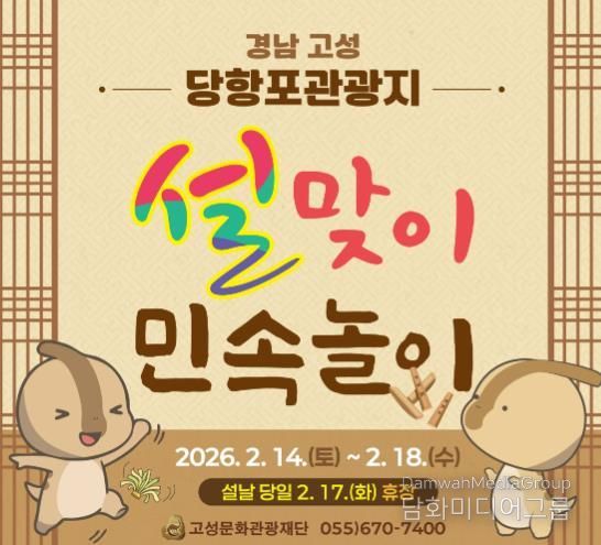 시민행정신문 강갑수 기자 | (재)고성문화관광재단은 2026년 설 연휴를 맞아 당항포관광지를 찾는 관광객과 고성군민을 위해 ‘2026 당항포관광지 설맞이 민속놀이 체험’ 행사를 운영한다고 밝혔다.