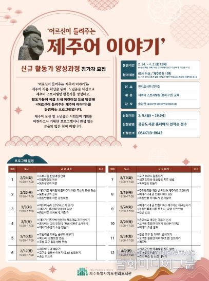 한지운 한라도서관장은 “이번 프로그램은 어르신들에게는 성취감을, 아이들에게는 제주어의 따뜻한 정서를 선물하는 기회가 될 것”이라며, “제주어를 매개로 세대가 소통하는 뜻깊은 여정에 많은 어르신의 참여를 바란다”고 전했다.