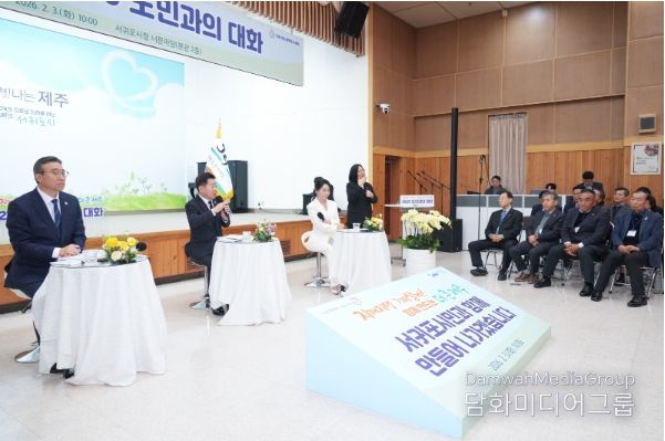 제주도는 3일 오전 10시 서귀포시청 너른마당에서 ‘2026년 도민과의 대화’를 개최하고, 서귀포의 주요 현안과 발전 방향을 도민과 함께 논의했다.