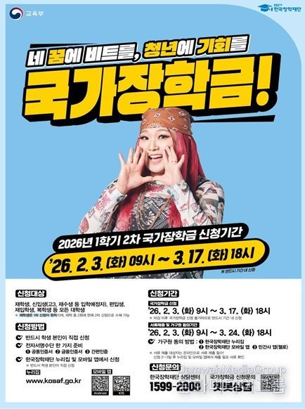 시민행정신문 김학영 기자 | 교육부와 한국장학재단(이사장 배병일)은 2월 3일부터 3월 17일까지 2026학년도 국가장학금 1학기 2차 신청을 받는다.