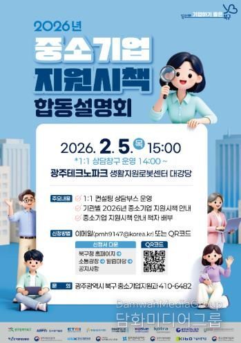 4일 북구에 따르면 오는 5일 오후 3시 광주테크노파크 생활지원로봇센터 대강당에서 ‘2026년 중소기업 지원시책 합동설명회’가 개최된다.