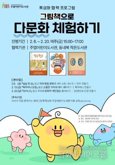 이번 프로그램은 세계그림책 특성화 도서관인 주엽어린이도서관과 다문화 어린이 이용 비율이 상대적으로 높은 동네북 작은도서관이 협력해 추진한다. 그림책을 매개로 우리나라의 명절과 문화를 이해하고 다양한 문화와 음식을 경험할 수 있도록 기획됐다.