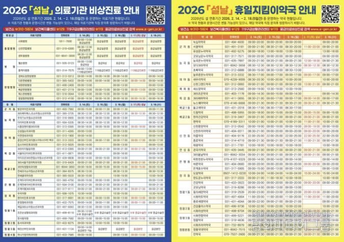 시민행정신문 기자 | 시흥시는 설 명절 연휴 기간인 2월 14일부터 18일까지 5일간, 의료기관과 약국 휴무로 인한 시민의 불편을 최소화하고자 설 명절 기간 문 여는 의료기관과 약국, 소아 취약지 의료기관과 공공심야약국을 운영한다.