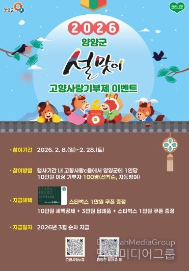 시민행정신문 강갑수 기자 | 양양군이 2026년 설 명절을 맞아 고향사랑기부제 참여 확산을 위해 '붉은 말의 해! 고향사랑기부제 설맞이 이벤트'를 실시한다.