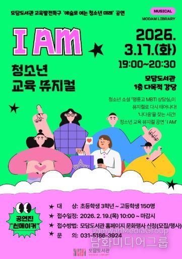 시민행정신문 기자 | 김포시모담도서관은 2026 교육발전특구 사업의 일환으로 청소년을 대상으로 한 공연 ‘청소년 뮤지컬 I AM’을 3월 17일 19시부터 20시 30분까지 모담도서관 1층 다목적강당에서 운영한다.