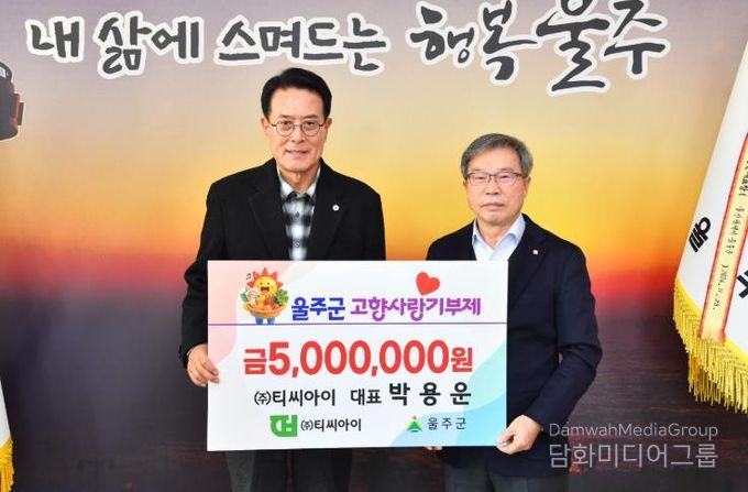 시민행정신문 강갑수 기자 | 박용운 ㈜티씨아이 대표가 5일 울주군 지역 발전을 위해 고향사랑기부금 500만원을 전달했다.