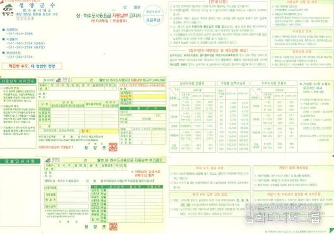 시민행정신문 강갑수 기자 | 청양군이 군민의 소중한 개인정보를 보호하고 고지서 가독성을 높이기 위해 상·하수도 요금 고지서를 기존 지로형에서 ‘봉합형’으로 전면 개편한다.