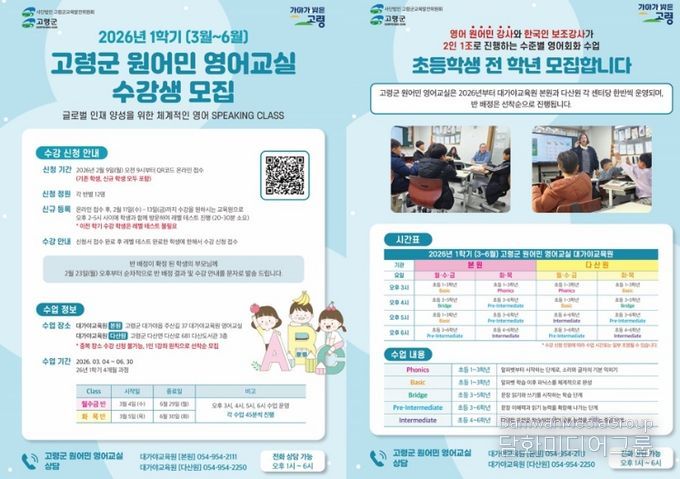 고령군 관계자는 “원어민과의 정기적인 영어 수업을 통해 학생들이 영어에 대한 두려움을 줄이고, 의사소통 능력과 자신감을 함께 키워나가길 바란다”고 전했다.