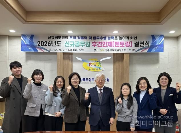 시민행정신문 기자 | 경상북도성주교육지원청은 6일 소회의실에서 2026. 1. 1.자 신규 공무원 1명, 멘토 공무원 2명이 참석하여 신규 공무원의 조직 적응력을 높이고 자신감 있는 공직 생활을 유도하고자 후견인제(멘토링) 결연식과 직무연수를 가졌다.