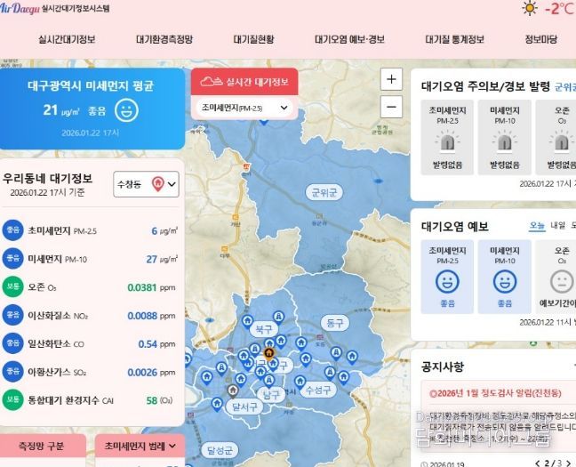 측정 자료는 대구시 실시간대기정보시스템과 에어코리아를 통해 공개되며, 고농도 미세먼지 발생 시 즉각적인 안내로 시민 불편을 최소화할 예정이다.