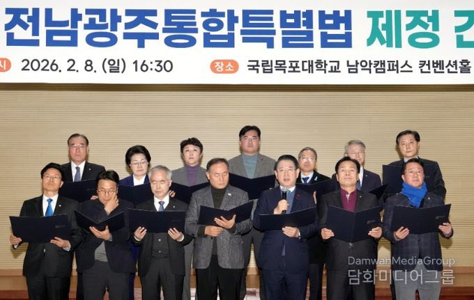 전남도와 광주시는 더불어민주당 전남도당·광주시당과 함께 8일 목포대학교 남악캠퍼스에서 ‘전남광주특별법안 논의 제5차 간담회’를 열고, 전남·광주 행정통합 특별법 추진 상황을 점검하고 국회 심사 대응 방안을 논의했다.