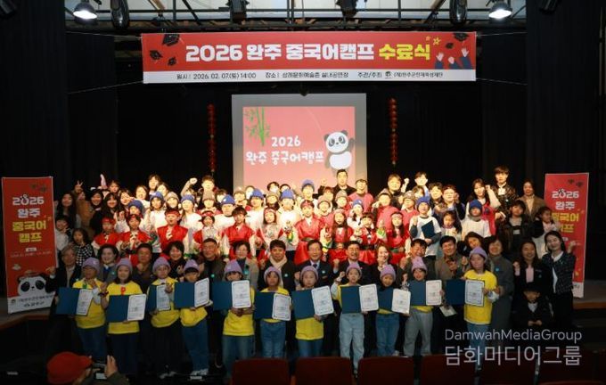 이번 수료식은 초등학교 2학년부터 중학교 1학년까지 학생 43명이 참여한 중국어캠프의 교육 성과를 공유하는 자리로, 유희태 완주군수와 유의식 군의회 의장, 재단 이사, 학부모 등 100여 명이 참석해 학생들의 성장을 함께 축하했다.