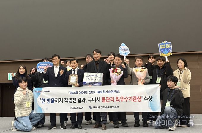 시민행정신문 강갑수 기자 | 구미시 상하수도사업본부는 지난 5일 세계 물의 날을 맞아 경주화백컨벤션센터에서 열린 ‘2026년 상반기 물종합기술연찬회’에서 체계적인 물관리 정책과 안정적인 상·하수도 운영 성과를 인정받아 ‘물관리 최우수기관’으로 선정됐다.