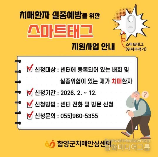 함양군치매안심센터 관계자는 “스마트태그 지원사업은 어르신들의 실종을 예방하고 조속한 발견과 복귀를 지원하여 치매 환자 가족의 불안을 줄이고 보호 부담을 완화하는데 의미가 있다”라고 말했다.