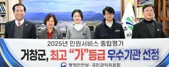 시민행정신문 강갑수 기자 | 거창군은 국민권익위원회·행정안전부 공동 주관한 ‘2025년 민원 서비스 종합평가’에서 최고 등급인 ‘가등급’에 선정돼 전국 최고 수준의 민원 서비스를 인정받았다.