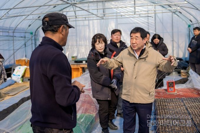 이 군수는 고추 육묘 현장에서 현재 육묘 진행 상황을 점검하고, 경영비 증가와 기후변화에 따른 영농 여건 변화 등 농가들이 겪는 현실적인 어려움을 들었다.