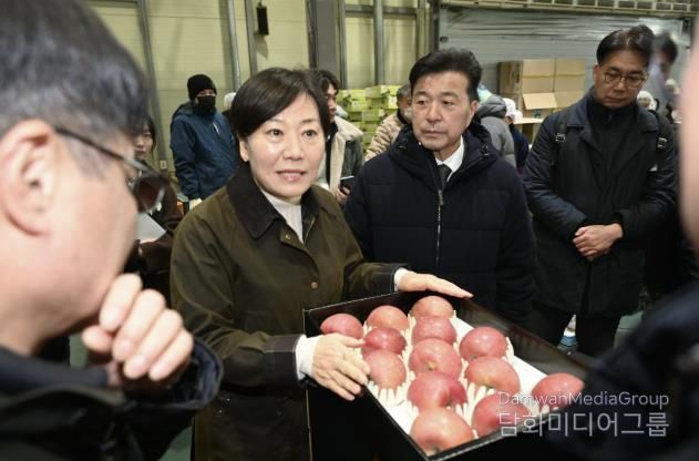 시민행정신문 강갑수 기자 | 예산군은 송미령 농림축산식품부 장관이 지난 7일 예산농산물유통센터를 방문해 설 성수품인 사과의 저장 및 공급 상황을 점검했다고 밝혔다.