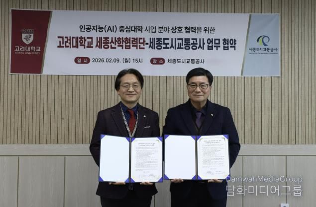 시민행정신문 강갑수 기자 | 세종도시교통공사는 2월 9일, 공사 사장실에서 고려대학교 세종산학협력단과 ‘인공지능(AI) 중심대학 사업 협력 및 공사 사업 AX(AI 전환) 가속화를 위한 업무협약(MOU)’을 체결했다고 밝혔다.