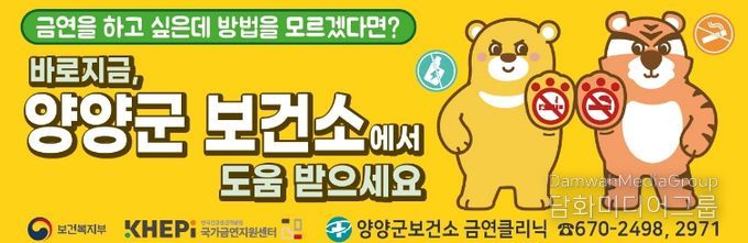 한편, 양양군보건소 금연클리닉은 금연을 희망하는 지역 주민이라면 누구나 연중 평일 오전 9시부터 오후 6시까지 참여할 수 있으며, 자세한 사항은 양양군보건소 금연클리닉을 통해 안내받을 수 있다.