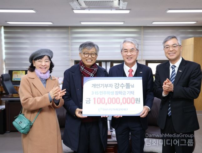 박종훈 이사장은 “3.15 민주 정신의 역사적 의미를 되살리고, 강수돌 교수의 따뜻한 마음을 학생들에게 잘 전달하겠다”라며 “우리 학생들이 민주주의 가치를 배우고 실천하며 자랄 수 있도록 장학 사업을 정성껏 운영하겠다”라고 밝혔다.