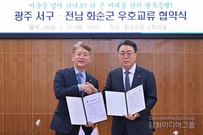 시민행정신문 강갑수 기자 | 광주광역시 서구는 10일 전라남도 화순군청에서 화순군과 우호교류 협약을 체결하고 생활권을 공유하는 이웃 지자체 간 협력과 공동발전을 위한 상생 체계를 구축하기로 했다.