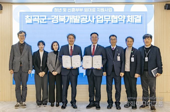 군은 지난 5일 김재욱 칠곡군수와 이재혁 경상북도개발공사 사장이 참석한 가운데, 청년 및 신혼부부의 안정적인 정주 여건 조성을 위한 업무협약을 체결했다.