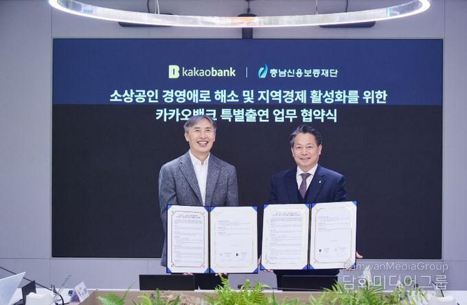 시민행정신문 강갑수 기자 | 충남신용보증재단(이사장 조소행)은 지역 중소기업·소상공인의 금융 접근성 향상과 디지털 금융 혁신을 위해 지난 2월 10일 카카오뱅크와 '중소기업·소상공인 금융지원을 위한 특별출연 업무협약'을 체결하고, 총 300억 원 규모의 신용보증 지원에 나섰다.