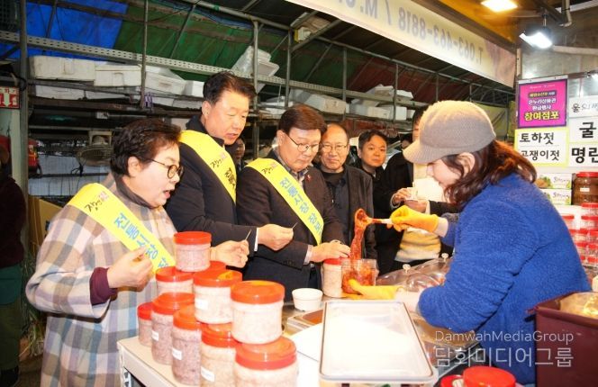 시민행정신문 강갑수 기자 | 전북특별자치도의회는 설 명절을 앞둔 10일 군산 주공시장을 방문해 전통시장 상인들을 응원하며, 시장 활성화를 위한 장보기 행사와 이용 캠페인을 진행했다.