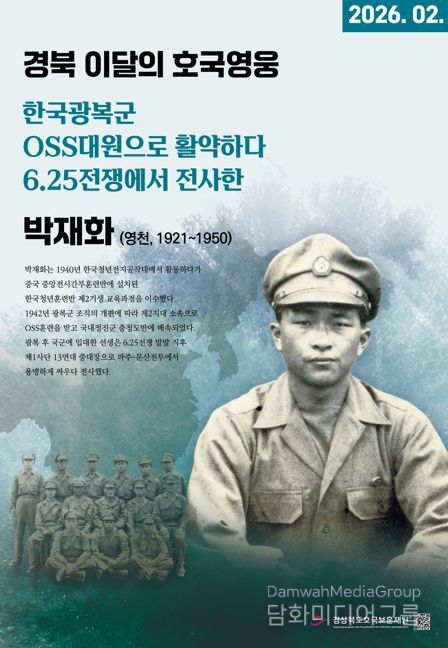 시민행정신문 기자 | 경상북도호국보훈재단은 2026년 ‘경북 이달의 호국영웅’ 2월의 주인공으로 영천 출신 박재화 선생(朴載華, 1921~1950)을 선정했다고 밝혔다.