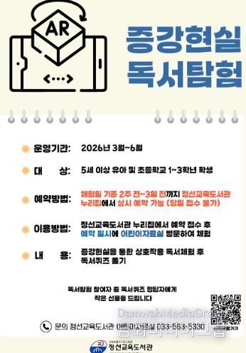 시민행정신문 기자 | 정선교육도서관은 2026년 3월 4일부터 6월 30일까지 어린이자료실에서 5세 이상 유아 및 초등학생 1~3학년을 대상으로 ‘인공지능 독서 체험’을 운영한다고 밝혔다.