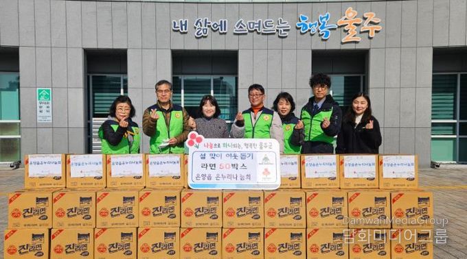 시민행정신문 강갑수 기자 | 온누리나눔회가 11일 설 명절을 맞아 울주군 온양읍 행정복지센터에 라면 50박스를 기탁했다.