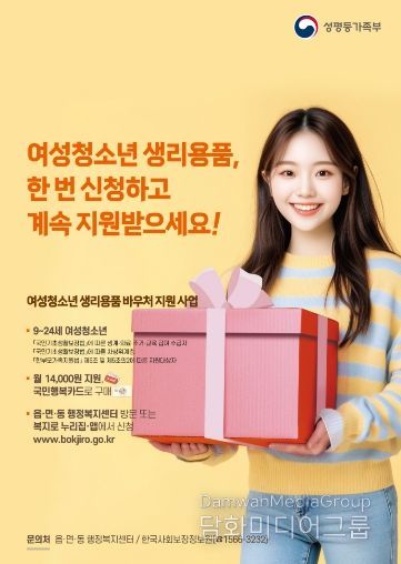 시민행정신문 강갑수 기자 | 양양군은 취약계층 여성청소년의 건강한 성장과 복지 향상을 위해 '여성청소년 생리용품 바우처 지원사업'을 시행한다.