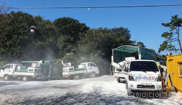 사체 처리는 침출수 유출과 토양 오염을 최소화하기 위해 FRP 통을 활용해 안전하게 마무리했으며 발생지 주변에는 소독 차량 7대를 투입해 집중 소독을 실시하고 있다.