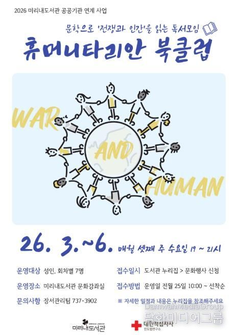 시민행정신문 강갑수 기자 | 원주시 미리내도서관은 지역사회 내 독서 문화 확산을 위해 대한적십자사 인도법연구소와 연계한 재능 기부 프로그램 ‘휴머니타리안 북클럽’을 운영한다.
