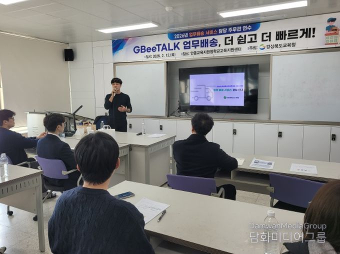 시민행정신문 기자 | 경북교육청은 12일 안동시에 있는 안동교육지원청 학교교육지원센터 대회의실에서 도내 학교지원센터 담당 장학사, 업무 배송 주무관, 업무 배송 팀장 등 약 80명을 대상으로‘2026 모두를 위한 업무 배송 서비스 운영자 연수’를 개최했다고 밝혔다.