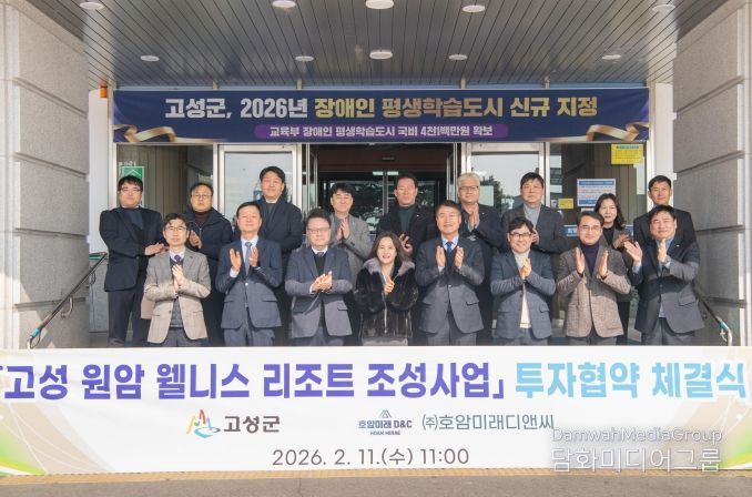 시민행정신문 강갑수 기자 | 평화 경제 거점 도시 강원 고성군은 2월 11일 군청 본관 회의실에서 ㈜호암미래디앤씨(대표 전은영)와 '고성 원암 웰니스 리조트 조성사업' 투자 협약식을 체결했다고 밝혔다.