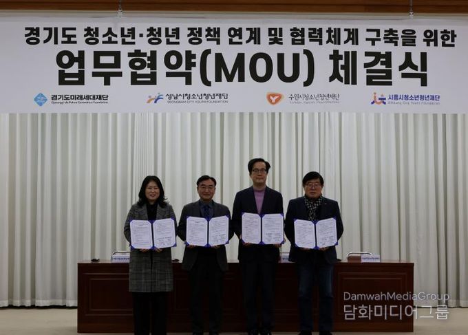 시민행정신문 강갑수 기자 | 경기도미래세대재단은 12일 옛 경기도청사 신관 4층 대회의실에서 수원·성남·시흥시청소년청년재단과 ‘경기도 청년 정책 연계 및 협력체계 구축 업무협약’을 체결했다.