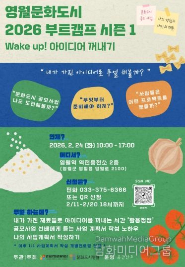 시민행정신문 강갑수 기자 | (재)영월문화관광재단 문화도시센터는 오는 2월 24일 영월역 문화충전소에서 지역민의 창의적인 로컬 아이디어를 발굴하고 실질적인 사업계획서로 발전시키기 위한 ‘영월 로컬 아이디어 구체화 부트캠프 시즌 1’을 개최한다.