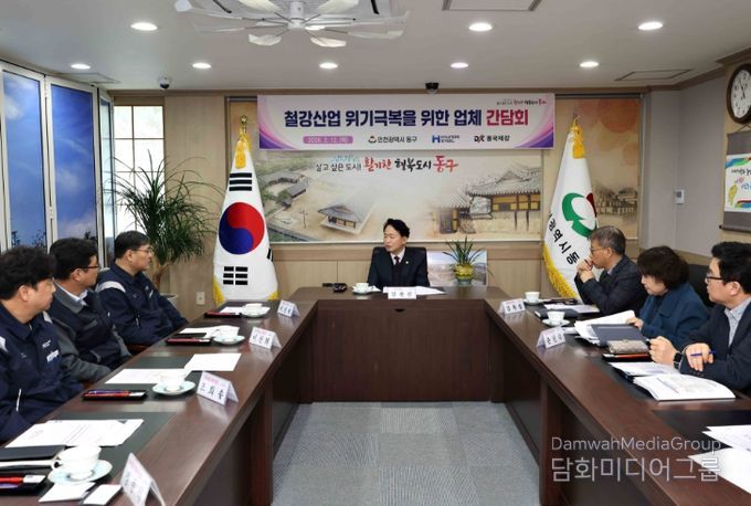 시민행정신문 강갑수 기자 | 인천 동구는 지난 12일 구청 접견실에서 현대제철과 동국제강 등 기업 관계자들과 함께‘철강산업 위기 극복을 위한 간담회’를 개최했다고 밝혔다.