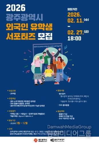 시민행정신문 강갑수 기자 | 광주광역시는 광주의 매력과 지역대학 정보를 세계에 알릴 ‘제3기 외국인 유학생 서포터즈’ 20명을 오는 27일까지 모집한다.
