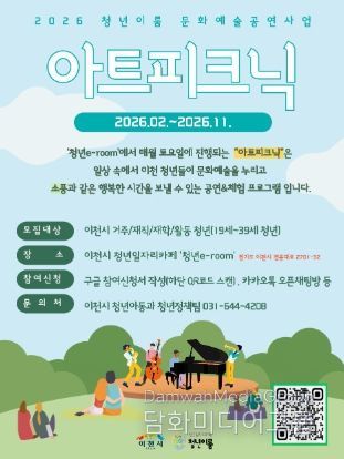 시민행정신문 기자 | 이천시 청년일자리카페(이천시 경충대로 2701-32)는 지역 청년들에게 일상의 쉼표와 성장의 기회를 제공하는 ‘청년이룸 문화예술공연 사업’을 본격적으로 운영한다고 밝혔다.