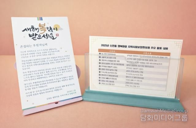 신화철 신천동장은 “후원자 여러분의 변함없는 관심과 사랑 덕분에 신천동이 더욱 따뜻한 공동체로 자리매김하고 있다”라며 “이번 감사 서한 발송이 작은 위로와 격려가 되기를 바란다. 행정복지센터도 민관 협력을 통해 취약계층 지원과 지역 복지 네트워크 활성화에 최선을 다하겠다”라고 말했다.