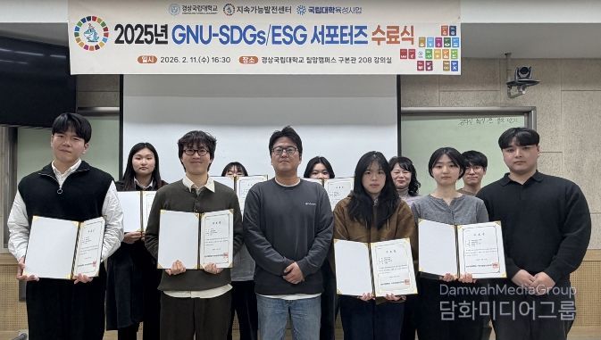 시민행정신문 강갑수 기자 | 경상국립대학교 지속가능발전센터는 2월 11일 칠암캠퍼스에서 ‘2025년 GNU-SDGs/ESG 서포터즈 수료식’을 개최했다.