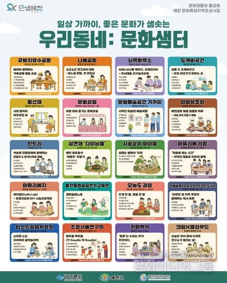 시민행정신문 기자 | (재)예천문화관광재단은 ‘문화특화지역 조성사업’의 일환으로 추진 중인 ‘우리동네 문화샘터’의 공간별로 세부 프로그램 공개, 오는 28일까지 참여자를 모집한다.