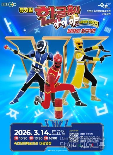 시민행정신문 기자 | 속초시는 3월 14일 10시 30분, 13시 30분, 16시 하루 3회 속초문화예술회관에서 뮤지컬‘한글용사 아이야 새로운 이야기-달라도 친구야’를 선보인다.