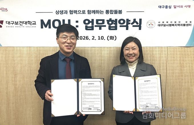 시민행정신문 강갑수 기자 | 대구 달서구 달서행복지역자활센터는 대구보건대학교 식품영양학과와 지역 내 통합돌봄서비스 강화를 위한 업무협약(MOU)을 체결했다고 18일 밝혔다.