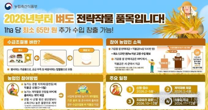 이번에 추가된 수급조절용 벼는 평상시에는 생산 단계부터 가공용으로 용도를 제한해 밥쌀 시장에서 해당 면적을 격리하고 흉작 등 비상시에는 밥쌀용으로 전환해 수급 불안을 해소하는 역할을 한다.