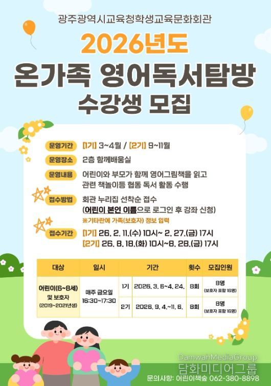 학생교육문화회관은 이번 프로그램을 통해 유아·어린이들이 영어를 자연스럽게 접하며 가족 단위의 건전한 독서 습관을 형성할 수 있을 것으로 기대하고 있다.